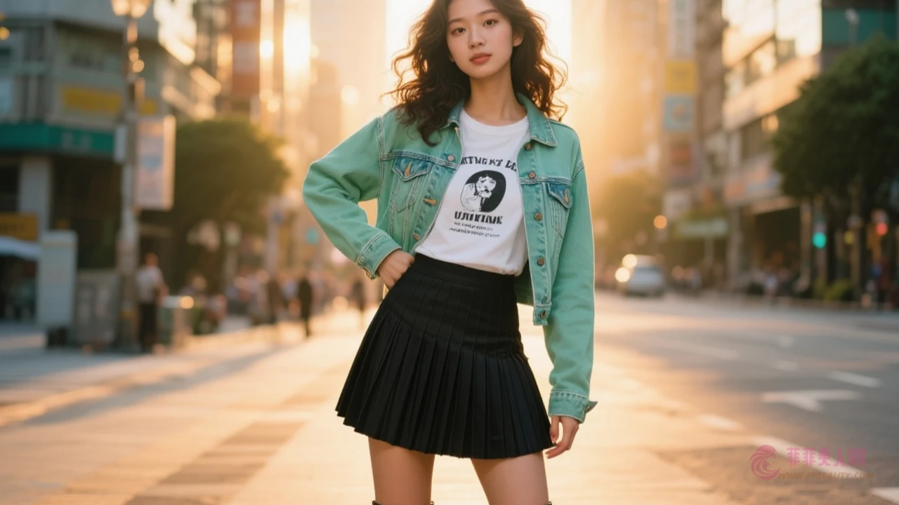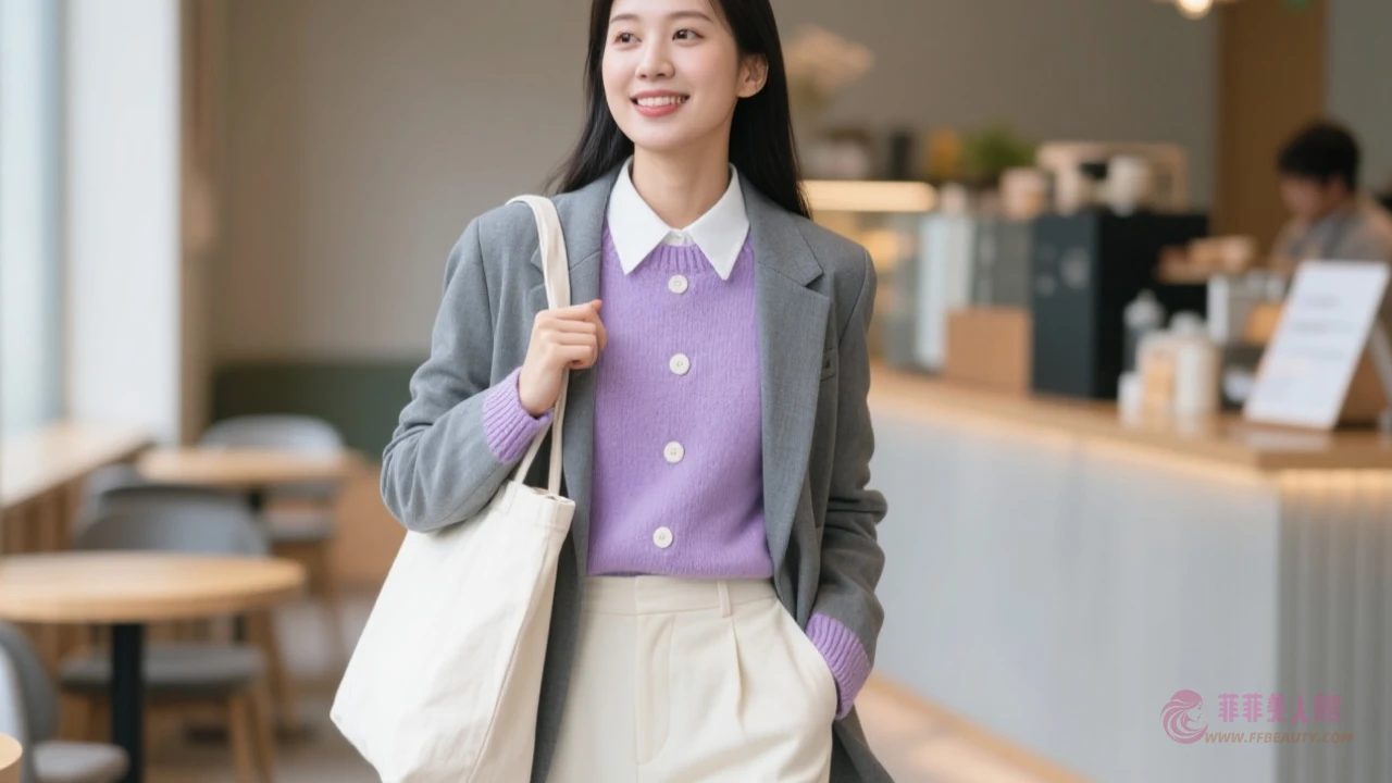 推薦嘗試「薄荷綠牛仔外套+白T」的清新組合,下半身搭A字短裙與黑色長靴,小露腿部線條更顯輕盈。香芋紫針織衫配黑絨長裙也是約會首選,記得踩雙尖頭跟鞋瞬間拉長比例!